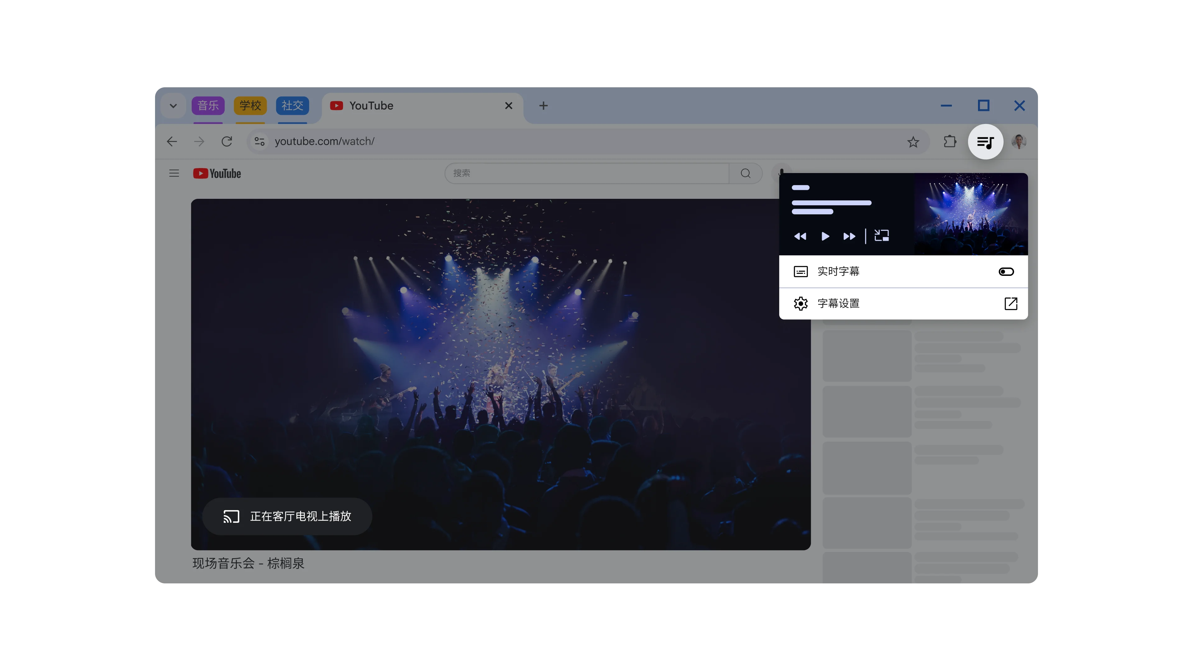 借助 Chrome,您可以将电脑或手机中的内容投屏到内置 Google Cast 的电视。您可选择是投放整个屏幕,还是只投放特定标签页。